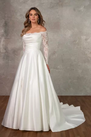 Ball gown wedding dresses are a great choice for brides that want a timeless and flattering silhouette. Many brides love the princess-like feeling ball gowns evoke, The fitted bodice and full skirt flatter many body types, highlighting the waist and creating an hourglass figure. The voluminous skirt creates a dramatic and memorable entrance, perfect for the formality and significance of a wedding. Every inner princess will delight in this beautiful grand silhouette.