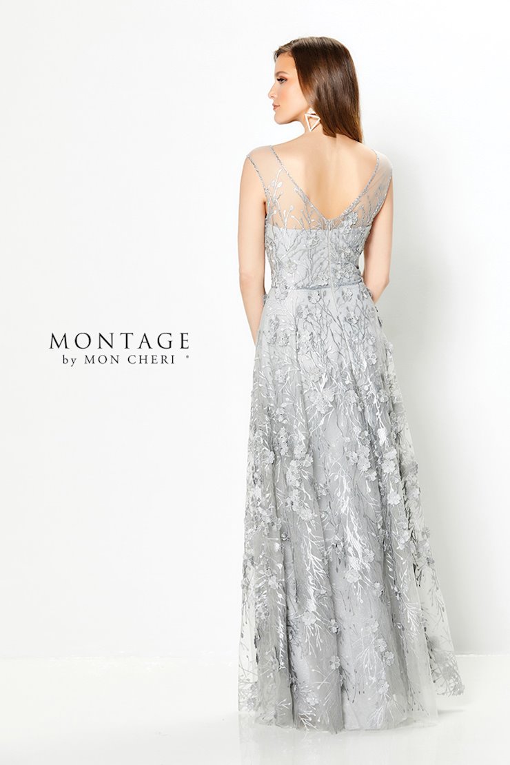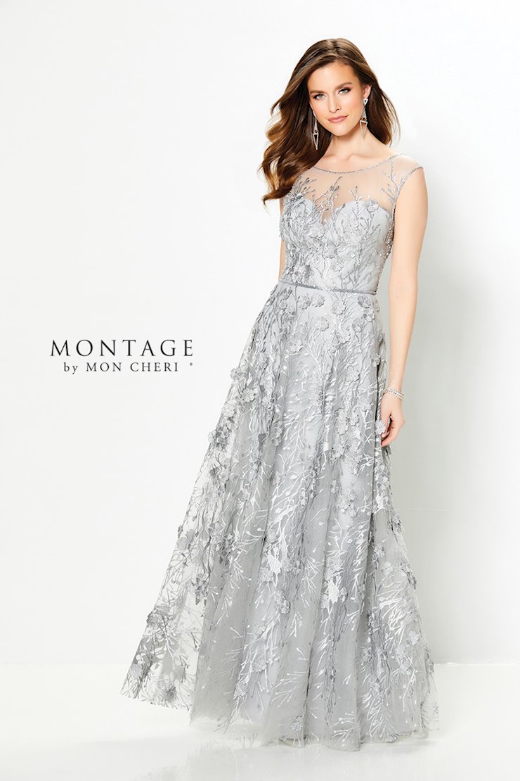 Both modern and classic, this embroidered lace and tulle over metallic novelty knit A-line gown adorned with three-dimensional flowers and beading features illusion slight cap sleeves, an illusion neckline and an illusion V-back trimmed with beading. It also offers a sweetheart bodice, beading around the natural waistline and a gathered skirt. A matching tulle shawl with beaded trim is included.