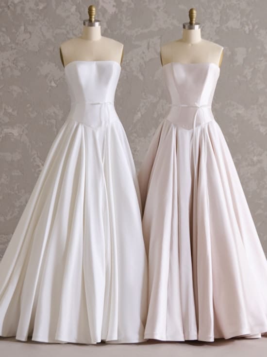 Emmanuelle by Maggie Sottero is a beautiful soft satin ball gown with an exquisite basque waistline . This stunning dress will make you feel royal on your big day.