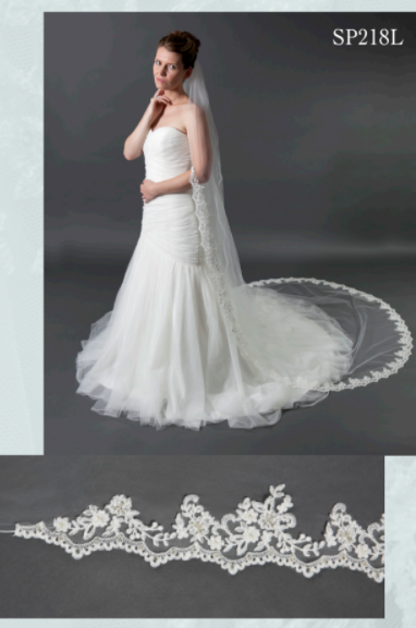 108″ x 72″ One Tier 3″ Beaded Alencon Lace Veil with Rolled Edge on upper 21″