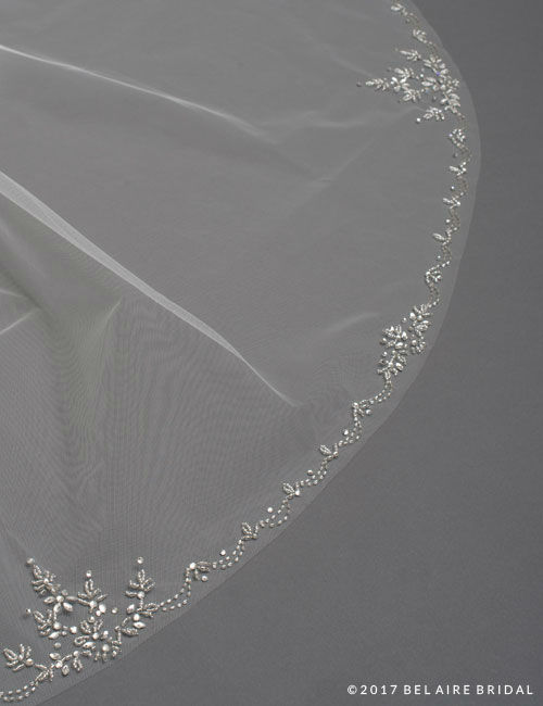 Bel Aire Bridal strives to create a special treasure for every bride. Their bridal veils range from simple ribbon or cut edges and dainty, beaded designs to lace trims and extensively embroidered masterpieces. Their diverse line offers pieces at various price points to accommodate different budgets, as no two weddings—or brides—are alike!